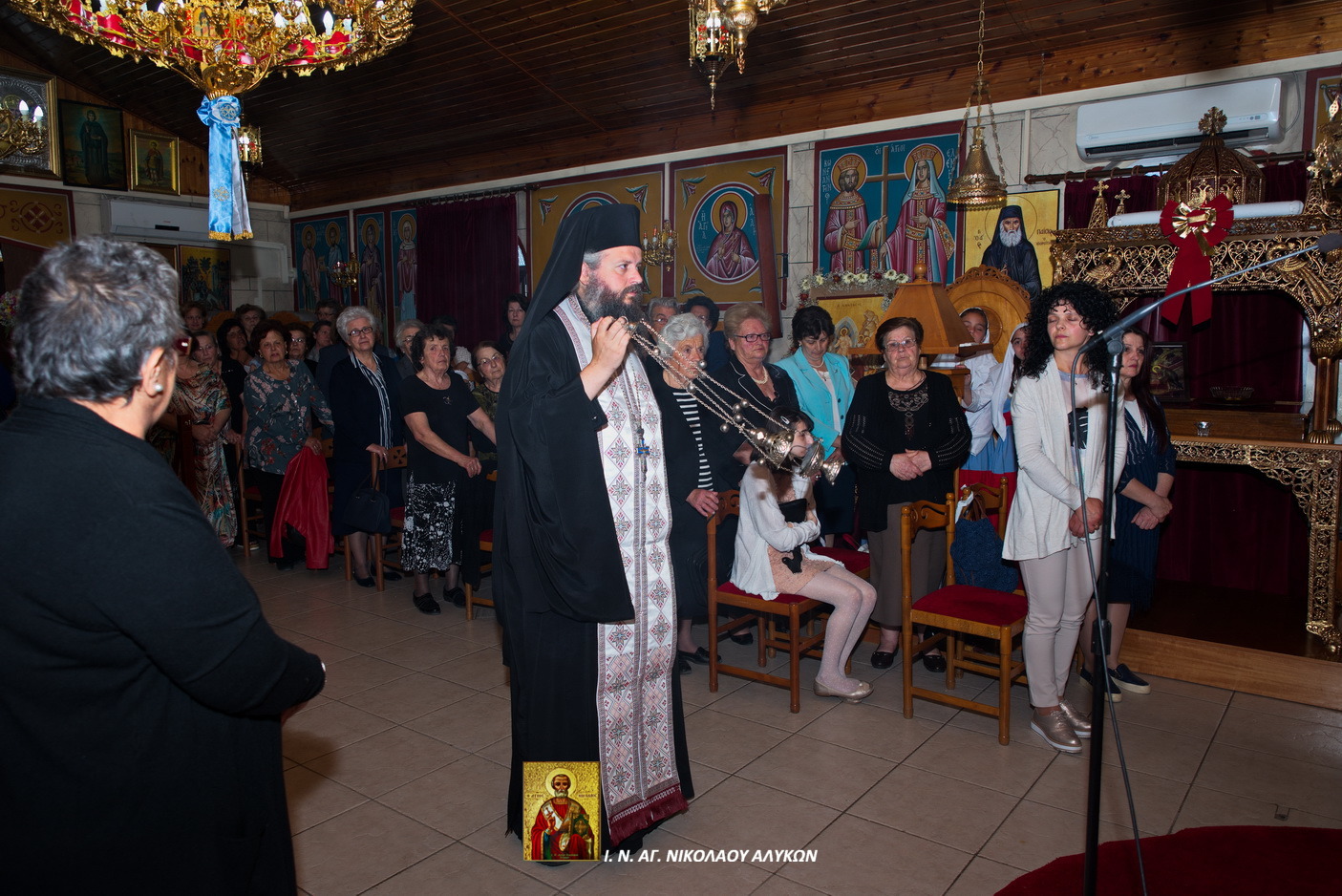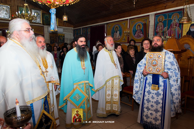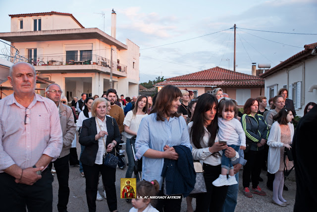 Την Τετάρτη 9 Μαΐου παραμονή της εορτής ετελέσθη μέγας πανηγυρικός εσπερινός μετ’ Αρτοκλασίας στο ναό του Αγίου Νικολάου των Αλυκών Κάτω Αχαΐας. Στην ακολουθία προέστη ο Πανοσιολογιώτατος Αρχιμανδρίτης π. Ζαχαρίας Σπυρόπουλος ο οποίος και εκήρυξε τον Θείον Λόγον.