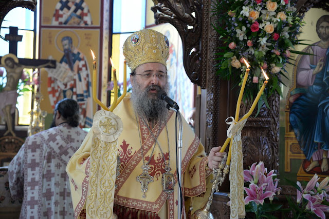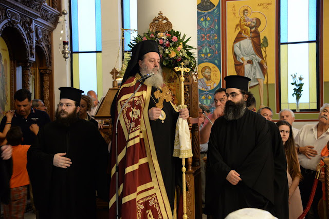 Ἀκόμη ὁ Σεβασμιώτατος ἐπήνεσε τὸν προϊστάμενο τοῦ Ναοῦ, π. Παναγιώτη Θωμᾶ καὶ τοὺς Συνεργάτας του στὸ Ἐνοριακὸ ἔργο καὶ ὅλους τούς Ἐνορίτας, οἱ ὁποῖοι εὐλαβοῦνται τὴν Ἁγία καὶ τῆς ἀφιέρωσαν μὲ κόπους πολλούς, σὲ δύσκολους καιρούς, αὐτὸν τὸ περίλαμπρο Ναό.