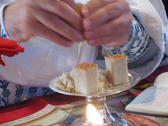 «Ο Λόγος σάρξ εγένετο και εσκήνωσεν εν ημίν». Τα λόγια γίνονται έργα, καθώς ο λειτουργός ιερέας προσφέρει τα λόγια τούτα, ζητώντας από το Θεό να μετουσιώσει τον άρτον σε σώμα Χριστού και τον οίνο σε αίμα Χριστού.