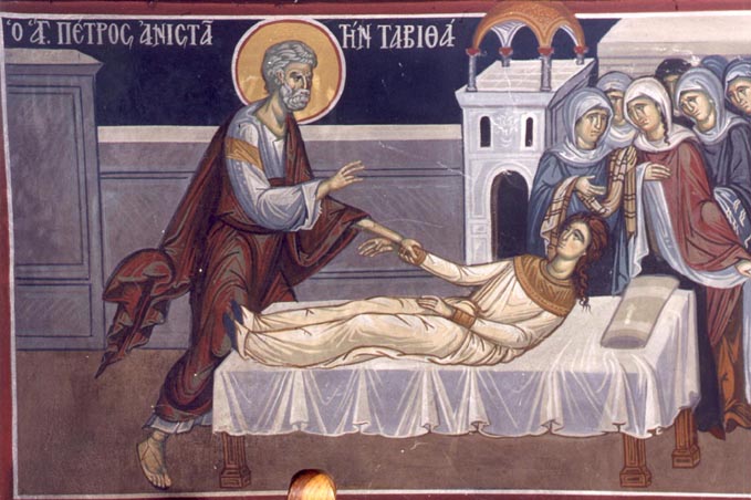 Από τίς Πράξεις των Αποστόλων (θ' 36-40) πληροφορούμαστε ότι η Δορκάς, ήταν εξειδικευμένη υφάντρια πού κατασκεύαζε χιτώνες και ιμάτια, τα όποια πωλούσε και από τα έσοδα συντηρούσε φτωχούς, χήρες και ορφανά. Όταν ο απόστολος Πέτρος, στα πλαίσια της διάδοσης του Ευαγγελίου, έφτασε στη Λύδδα της Παλαιστίνης, συνέβη ν' ασθενήσει η Δορκάς και να πεθάνει. Και ενώ είχαν ετοιμαστεί όλα για την κηδεία της, έγινε γνωστό ότι ο Πέτρος ήταν στη Λύδδα. Τότε δύο απεσταλμένοι, παρακάλεσαν τον Πέτρο να έλθει στην Ιόππη. Όταν έφτασε, τον ανέβασαν στο υπερώο, όπου ήταν νεκρή η Δορκάς. Συγκινημένος ο Πέτρος, χωρίς να πει τίποτα, έβγαλε όλους έξω, γονάτισε και προσευχήθηκε θερμά. Έπειτα είπε: «Ταβιθᾶ ἀνάστηθι». Και πράγματι η νεκρή αναστήθηκε! Αυτό χαροποίησε αφάνταστα τους παρευρισκόμενους, και το γεγονός διαδόθηκε σ' όλη την Ιόππη με αποτέλεσμα να πιστέψουν πολλοί στον Χριστό.