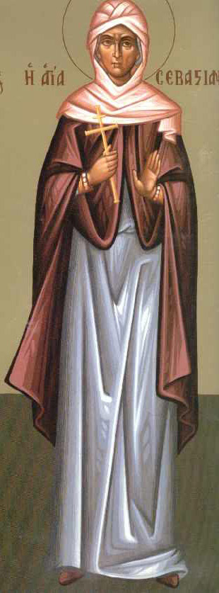 Η Αγία Σεβαστιανή καταγόταν από την πόλη Σεβαστή της Φρυγίας και διδάχτηκε τη χριστιανική πίστη από τον απόστολο Παύλο, και πήρε τη θερμότητα και την ανδρεία του διδασκάλου της.