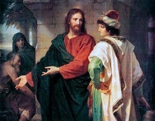 Γιὰ τρίτη φορὰ ἡ Ἁγία μας Ἐκκλησία μᾶς κτυπᾶ τὸ καμπανάκι γιὰ τὸν πλοῦτο. Μᾶς μίλησε τὶς προηγούμενες Κυριακὲς γιὰ τὸν πλούσιο ποὺ «ἐνεδιδύσκετο πορφύραν καὶ βύσσον» καὶ γιὰ τὸν πλούσιο ποὺ ἤθελε νὰ γκρεμίσῃ τὶς ἀποθῆκες του, γιὰ νὰ οἰκοδομήσῃ μεγαλύτερες. Τὰ δύο αὐτὰ παραδείγματα ἀναφέρονται σὲ παραβολές. Σήμερα μᾶς παρουσιάζει ἕνα πραγματικὸ γεγονός. Ἕνας νεαρὸς πλησιάζει τὸν Κύριο καὶ Τοῦ ζητᾶ συμβουλὲς πνευματικοῦ περιεχομένου. Ἡ συζήτηση καταλήγει σὲ μία σπουδαία πρόταση «Ἂν θέλῃς νὰ γίνῃς τέλειος, πούλησε τὰ ὑπάρχοντά σου, μοίρασε τὰ χρήματα στοὺς φτωχοὺς καὶ ἀκολούθησέ Με».