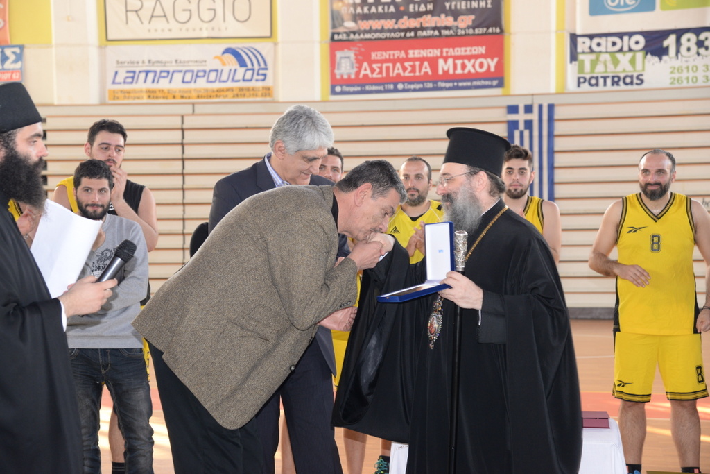 Μετά τόν ἀγῶνα ὁ Σεβασμιώτατος ἐτίμησε τούς, Παναγιώτη Γιαννάκη, διεθνοῦς φήμης ἀθλητή καί προπονητή τῆς καλαθοσφαίρισης καί τούς Πατρινούς ἀθλητάς τοῦ ἰδίου ἀθλήματος Κωνσταντῖνο Πετρόπουλο, Γεώργιο Σκροπολίθα καί Νικόλαο Δίπλαρο.