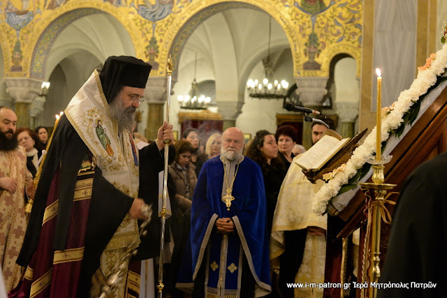 Ὁ Σεβασμιώτατος Μητροπολίτης Πατρῶν κ.κ. Χρυσόστομος ἐχοροστάτησε στήν Ἀκολουθία τῶν Χαιρετισμῶν στόν Νέο Ἱερό Ναό τοῦ Ἁγίου Ἀποστόλου Ἀνδρέου Πατρῶν , ἐν πληθούσῃ Ἐκκλησίᾳ.