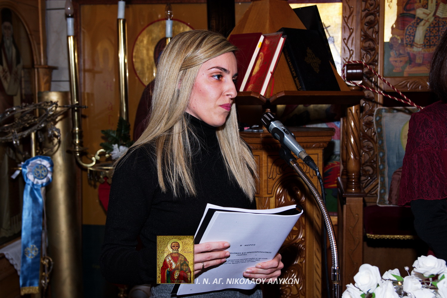 Την εκδήλωση παρουσίασε η πρεσβυτέρα Όλγα Δημητροπούλου και την χορωδία συντόνισε η Μαρία Κατζιώτη ενώ αφηγήτρια ήταν η κυρία Κωνσταντίνα Μπούσια Χαλιώτη. Την εορτή έκλεισε ο πατήρ Γεράσιμος Δημητρόπουλος που εξέφρασε λόγους αγάπης ενώ επήνεσε την προσπάθεια των παιδιών.