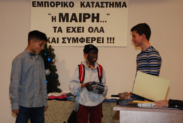 Το κατώτερο τμήμα παρουσίασε Χριστουγεννιάτικα σκέτς υπό την σκηνοθεσία της Κατηχήτριας κ. Μαρίας Κηπουργού, ενώ το ανώτερο παρουσίασε ένα χιουμοριστικό θεατρικό τη σκηνοθεσία του προϊσταμένου του Ναού πρωτοπρεσβυτέρου π. Ιωάννου Δημητροπούλου, του κ. Αθανασίου Χριστοδουλή και των ίδιων των παιδιών.