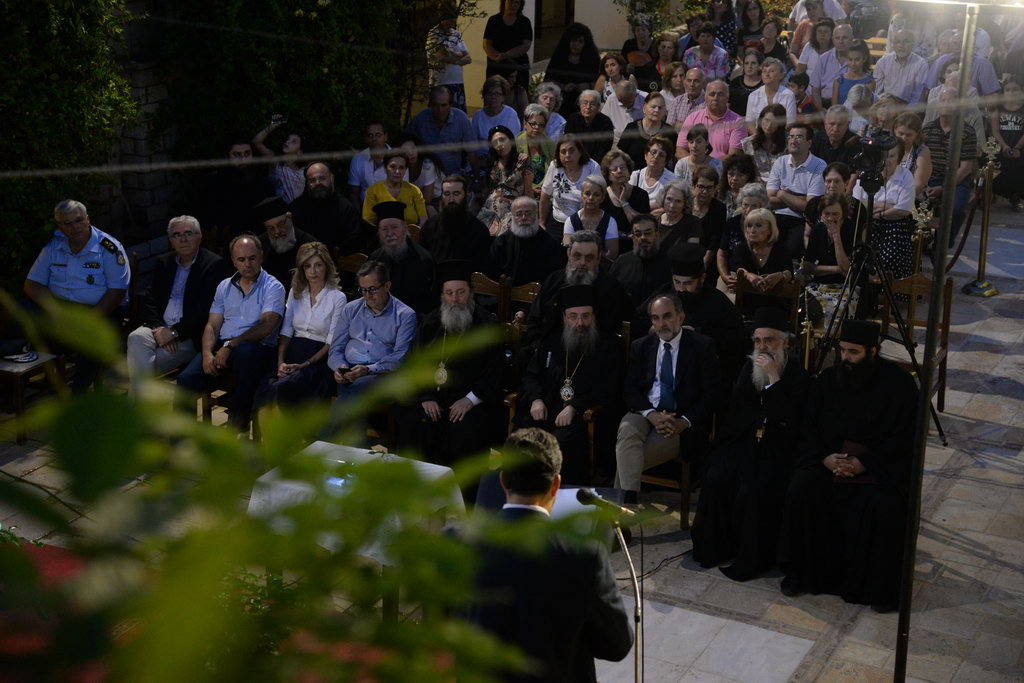 Ὁ Σεβασμιώτατος ἐστάθη ἰδιαιτέρως στήν μεγάλη προσφορά τῆς Μονῆς, ἡ ὁποία παρά τίς καταστροφικές λεηλασίες καί ποικίλες δυσκολίες πού πέρασε μέσα στό διάβα τοῦ χρόνου, στάθηκε καί στέκεται φρουρός, τροφός καί ἀπαντοχή τοῦ εὐσεβοῦς Λαοῦ μας. «Ἡ ὁμιλία τοῦ ἀγαπητοῦ μας κ. Ἀνδρουτσοπούλου, εἶπε ὁ Σεβασμιώτατος καί ἡ ἀποψινή μας ἐκδήλωση, εἶναι μιά ἀπάντηση σέ ὃσα ἂκριτα, ἀπό ἀνιστόρητους νόες, λέγονται ἐλαφρᾷ τῇ καρδίᾳ γιά ἰδεολογική κατανάλωση, περί χωρισμοῦ Ἐκκλησίας- Κράτους καί περί τοῦ θέματος τῆς «λεγομένης» Ἐκκλησιαστικῆς περιουσίας». «Ἡ Ἐκκλησία, κατέληξε, ὁ Σεβασμιώτατος, εἶναι ἡ μάνα αὐτοῦ τοῦ Λαοῦ, διαχρονικά».