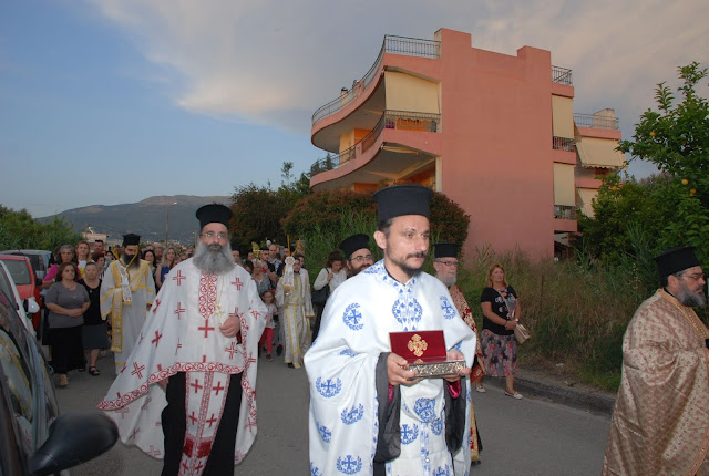 Εν συνεχεία ετελέσθη Λιτάνευσις της Ιεράς Εικόνος και των λειψάνων του Οσίου, εις τους δρόμους της Ενορίας, τη συνοδεία Ιερέων της Μητροπόλεώς μας, πλήθους κόσμου και της μουσικής μπάντας του Δήμου Πατρέων.