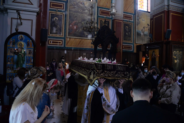 Κατά τήν Ἀκολουθίαν τῆς Ἀποκαθηλώσεως στόν Ἱερό Ναό τῆς Εὐαγγελιστρίας Πατρῶν, ὁ Σεβασμιώτατος Μητροπολίτης Πατρῶν κ.κ. Χρυσόστομος, μέσα ἀπό μιά συγκινητική ἀναφορά στό Πάθος τοῦ Κυρίου, εὐχαρίστησε τόν Θεό λέγοντας « Δόξα σοι Κύριε δόξα σοι, πού μᾶς ἀξίωσες νά προσκυνήσωμε καί φέτος τά Ἂχραντα Πάθη Σου. Ἀξίωσέ μας νά Σέ δοξολογήσωμε καί Ἀναστάντα ἐκ νεκρῶν».